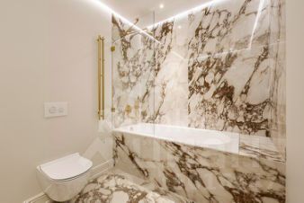 В апартаментах вашей мечты установлена итальянская кухня Valcucine, в спальнях кровати Baxter, в гостиной подвесная композиция Quid от Poliform; освещение представлено люстрами от Henge и Vistosi. Мебель в цену не входит.