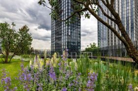 Комплекс предлагает собственный парк, центральное фойе с лобби-баром и камином, а также смотровую площадку на крыше каждого из корпусов. Профессиональная служба охраны и круглосуточное видеонаблюдение обеспечивают высокий уровень безопасности. Жители комплекса могут попасть на свой этаж только по чип-картам. Также предусмотрена двухуровневая подземная парковка.
