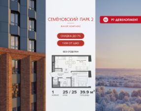 Продается 1-к квартира 39,9 кв.м. в ЖК "Семеновский парк 2" на 25-м этаже 25 этажного дома.