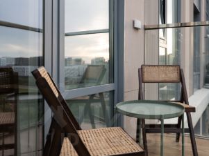 Из особенностей — наличие балкона-террасы, где приятно пить утренний кофе, наслаждаясь видом на зелень и закаты в любое время года. Окна квартиры выходят на северо-западную и южную стороны.