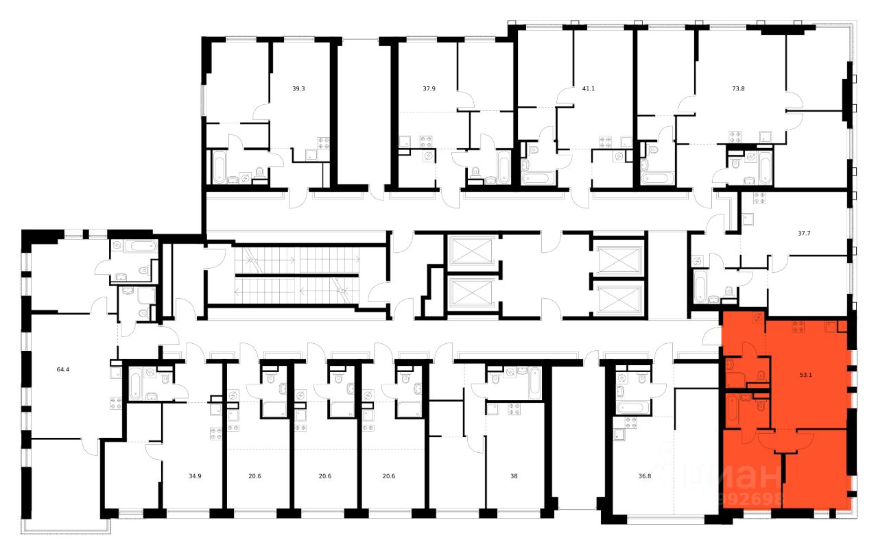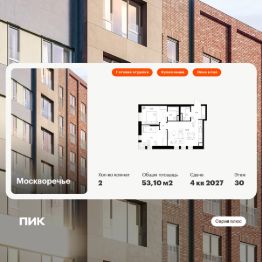 Продаётся 2-комн. квартира площадью 53,1 кв.м на 30 этаже 37 этажного дома (Корпус 1.1, Секция 1) проекта ПИК Москворечье. Светлый просторный подъезд на уровне земли, функциональная планировка, большие окна, c отделкой.