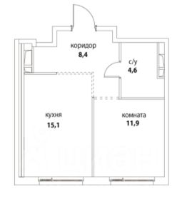 1 комната, 41 метр