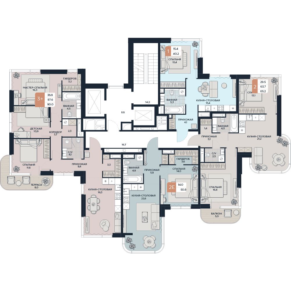 Планировка квартиры продумана до мелочей и позволяет создать комфортное пространство для жизни. Просторная кухня-столовая объединяет зону для приготовления пищи и гостиную, где можно разместить обеденный стол и зону отдыха. В отдельной спальне с угловым панорамным окном легко организовать уютное место для сна и работы.