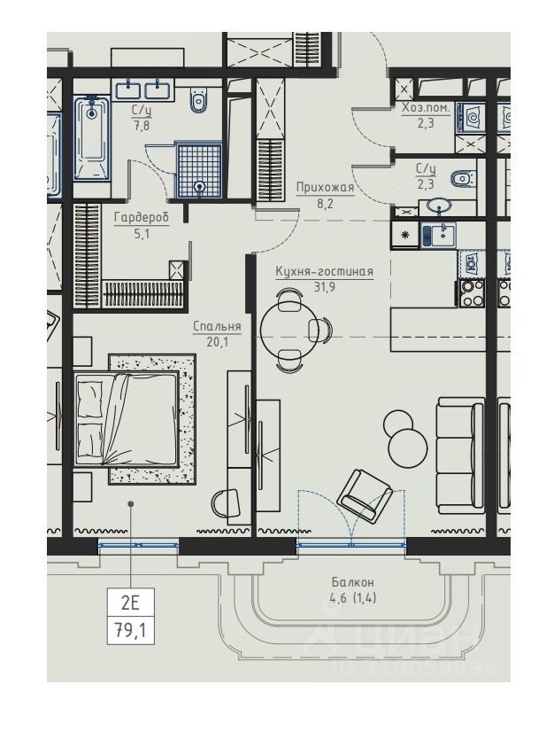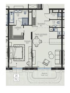 Кисельный переулок, д. 11, корп. 1 Общая площадь квартиры - 79,1 кв.м., этаж 5.