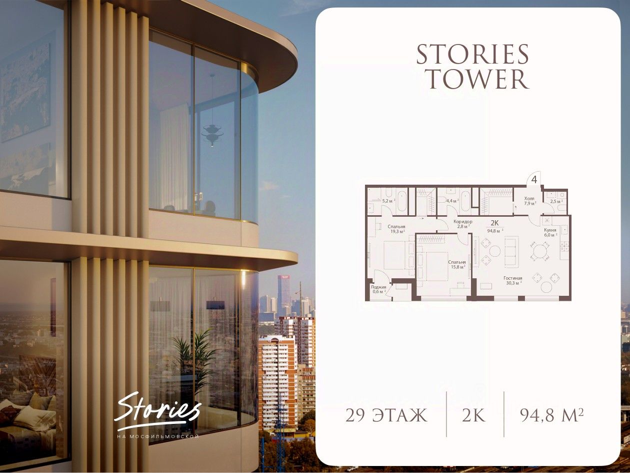Пентхаус с видами на Мосфильмовскую в Stories Tower! Старт продаж!