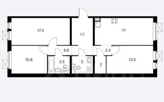 Площадь: 79,5 м² (кухня-гостиная 17 м², 3 комнаты 17,2 м², 13,4 м², 10,8 м²)