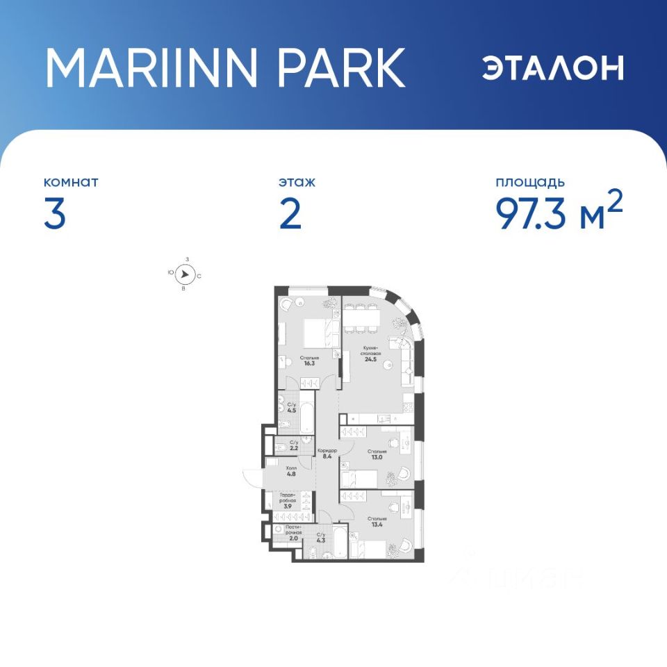 97,3 м²