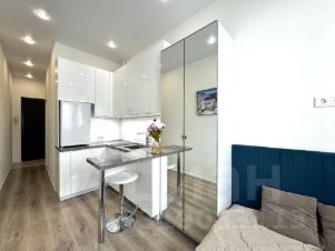 Студия полностью укомплектована мебелью и техникой, готова к проживанию или сдаче в аренду.