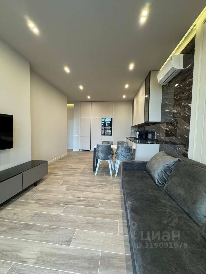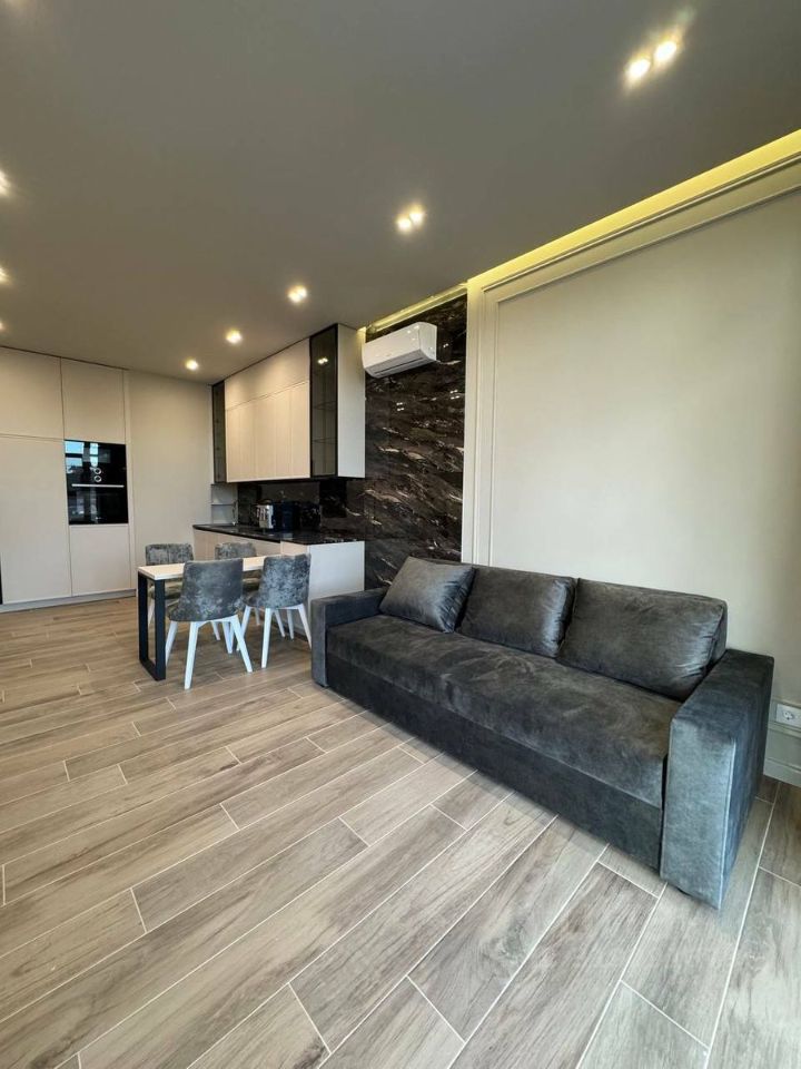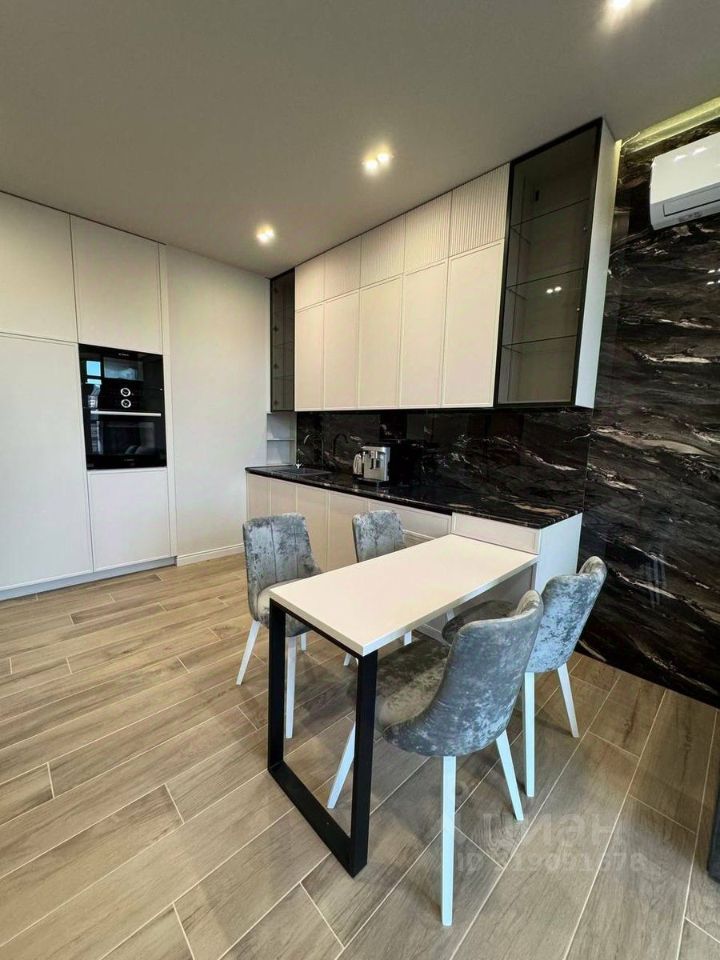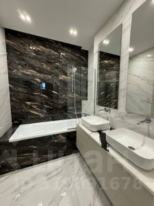 Выполнена дизайнерская отделка с использованием премиальных материалов. В квартире установлены индивидуальная система кондиционирования и тёплые полы. Полностью укомплектована мебелью и техникой — можно заехать и жить.