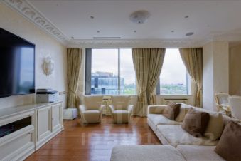 Светлая квартира, классический стиль, в отделке использовались только качественные, натуральные и дорогие материалы: венецианская штукатурка, лепнина, мрамор, вся мебель из Италии. Бытовая техника Kuppersbusch, встроенная в кухонный гарнитур. Фактически 2 спальни, но возможно сделать третью спальню вместо гардеробной. Планировка: кухня 15 кв.м. , гостиная 48 кв.м., мастер спальня 24 кв.м. с санузлом (душ и ванна) 11 кв.м. и гардеробной комнатой (с окном) 17 кв.м., детская спальня 20 кв.м., санузел (душ) 8 кв.м. постирочная, прихожая 16 кв.м. Из панорамных окон виды в сторону Парка Победы. Разумный торг уместен после просмотра и при определении всех условий сделки.