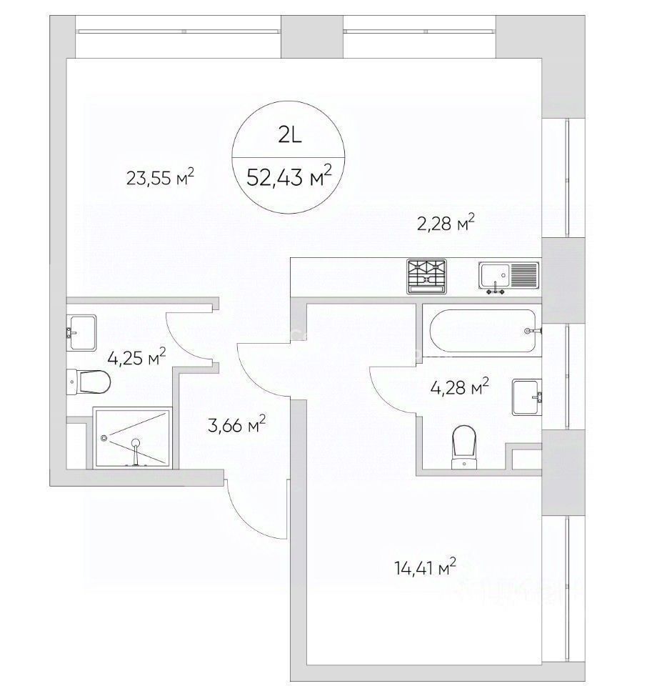 52,5 квадратных метра для воплощения любых ваших дизайнерских решений! В апартаментах 2 совмещенных санузла, высокие потолки и панорамные окна! Выдача ключей летом 2025 года!