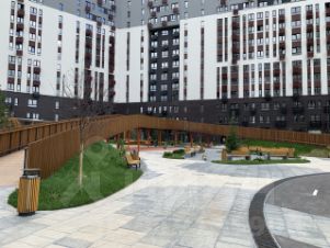 Благоустроенная придомовая территория, с детскими и спортивными площадками, с зонами для отдыха. Двор без машин