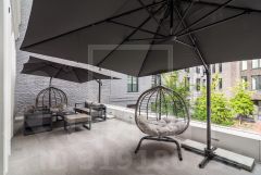 ID 64868. Роскошный апартамент с террасой в премиальном ЖК "Cloud 9". Планировка грамотно делит жилое пространство на функциональные зоны. В передней части апартамента размещена просторная гостиная-кухня-столовая с выходом на террасу, прихожая, гостевой санузел и постирочная. В приватной части располагаются мастер-спальня со своим санузлом и гардеробной и вторая спальня со своей ванной комнатой. Окна выходят в тихий уютный двор. Высокие потолки 3,6м.