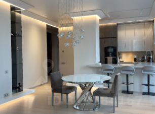 Современный ремонт выполнен в светлой цветовой палитре с использованием натуральных материалов из дерева, камня и керамогранита. Многоуровневое освещение. Система умный дом, управляемая с телефона.