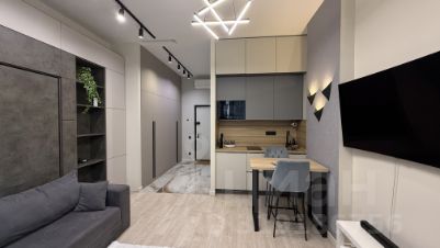 Уютная студия 27,6 м² с потолками 3,5 м, расположена на 7 этаже современного жилого комплекса LOFTEC. Окна выходят во двор.