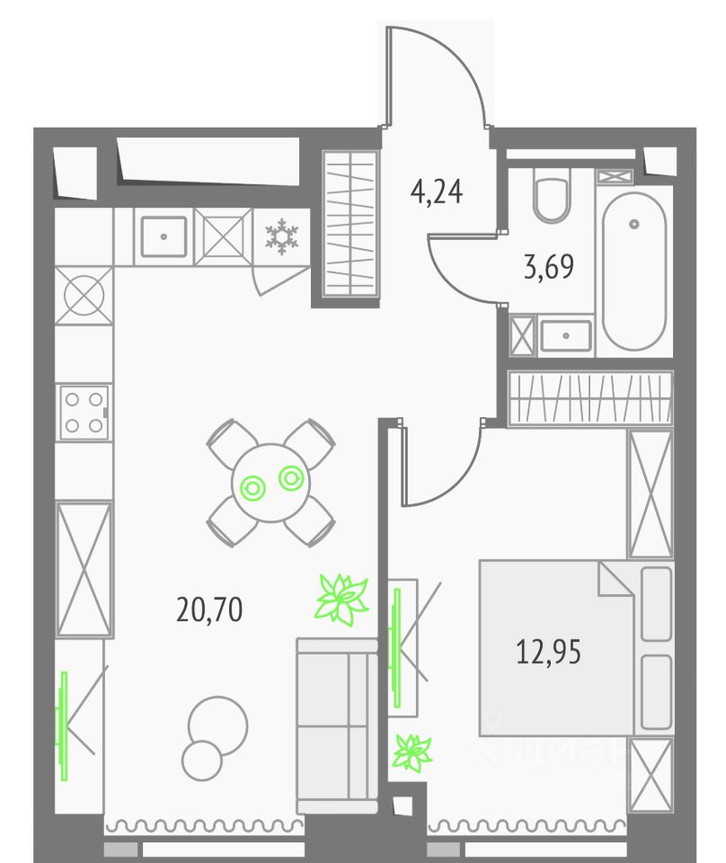 Покупая квартиру даже самого минимального размера в Upside Towers, вы получаете в пользование 2 000 м² бесплатных общественных пространств.