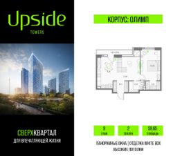 Upside Towers - технологичный квартал строится в динамично развивающемся Бутырском районе, в 3 мин. от метро, в 5 мин. от ТТК. На территории 7 га возводится 5 высотных башен от 19 до 58 этажей, названных в честь главных вершин земли. Квартиры с панорамными окнами в пол, высокими потолками и современными инженерными решениями. Благоустроенная зеленая территория включает: приватные дворы, природный комплекс, прогулочный бульвар, ландшафтный парк 2,5 га с сенсорным садом и многофункциональными игровыми и спортивными площадками.