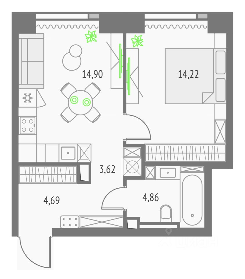 Покупая квартиру даже самого минимального размера в Upside Towers, вы получаете в пользование 2 000 м² бесплатных общественных пространств.
