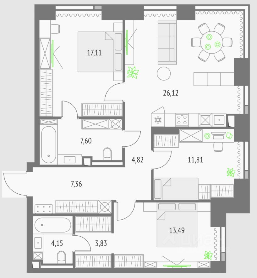 Покупая квартиру даже самого минимального размера в Upside Towers, вы получаете в пользование 2 000 м² бесплатных общественных пространств.