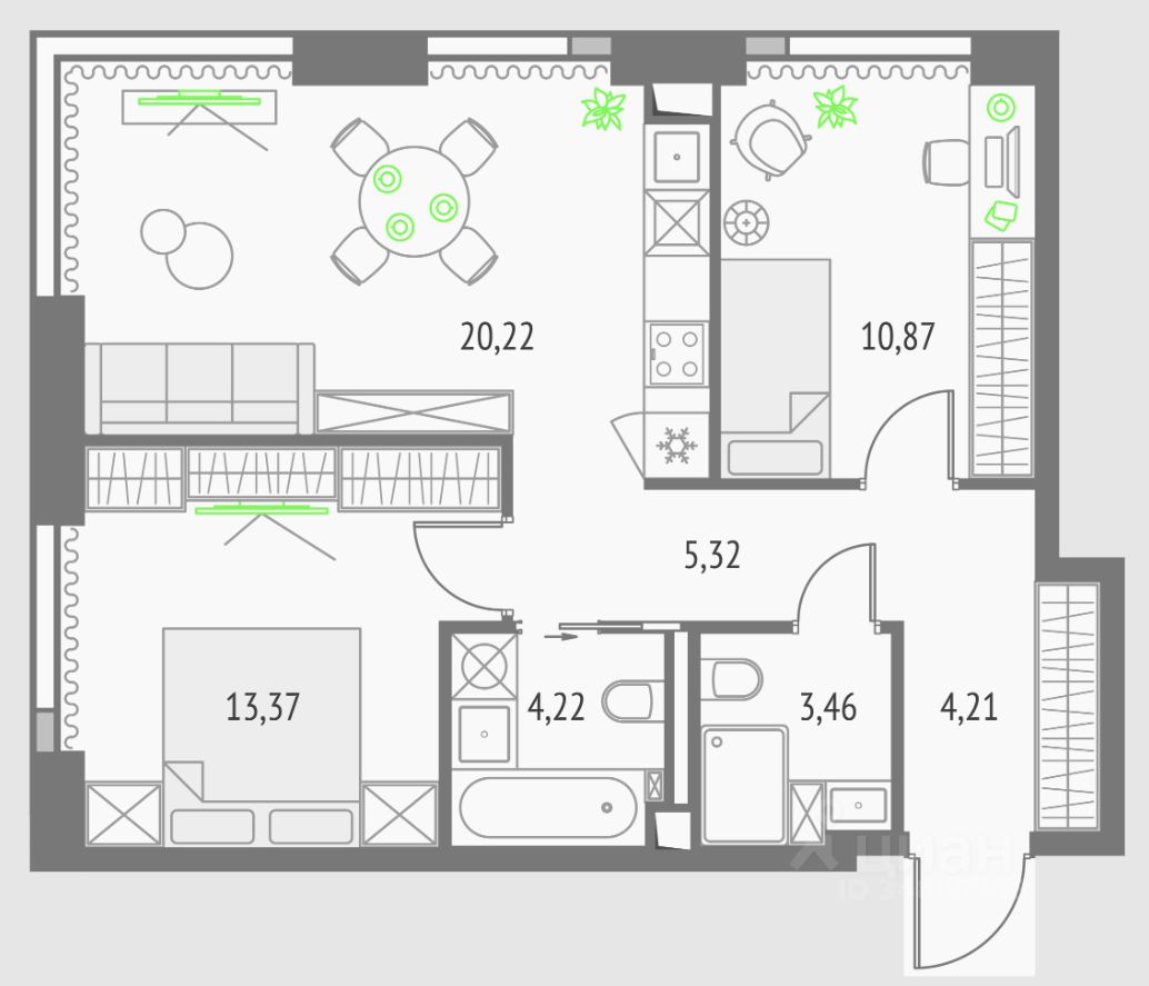Покупая квартиру даже самого минимального размера в Upside Towers, вы получаете в пользование 2 000 м² бесплатных общественных пространств.