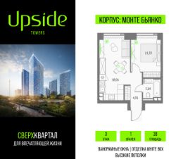 Upside Towers - технологичный квартал строится в динамично развивающемся Бутырском районе, в 3 мин. от метро, в 5 мин. от ТТК. На территории 7 га возводится 5 высотных башен от 19 до 58 этажей, названных в честь главных вершин земли. Квартиры с панорамными окнами в пол, высокими потолками и современными инженерными решениями. Благоустроенная зеленая территория включает: приватные дворы, природный комплекс, прогулочный бульвар, ландшафтный парк 2,5 га с сенсорным садом и многофункциональными игровыми и спортивными площадками.