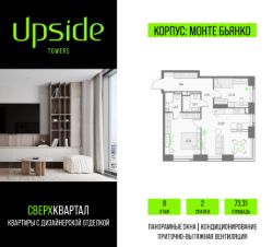 Продаётся 2-комнатная квартира площадью 73.31 кв.м на 8 этаже 46 этажного корпуса Монте Бьянко в квартале небоскребов "Upside Towers". Квартира с чистовой отделкой, c видом на Внутренний двор, корпус Эверест , корпус Атлас, корпус Олимп, Ландшафтный парк. Номер квартиры Г0808.
