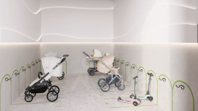 На первых этажах корпуса Монте Бьянко разместятся: фитнес студия, салон красоты, центр превентивной медицины, образовательные классы, книжный магазин, аптека, фермерская лавка, а также келлеры для хранения сезонных вещей. В приватном закрытом дворе разместятся разнообразные площадки для прогулок, игр и отдыха. Визитной карточкой двора станет уникальная биометрическая игровая пещера со сказочными тоннелями, горками и космическими "мягкими" камнями с неизведанных планет. Планету Земля дети смогут исследовать в павильоне круглый год: объемная крыша укроет от солнца и дождя. Игровая пещера будет реализована в стиле "эмоциональная архитектура".