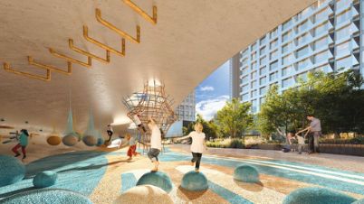 На первых этажах корпуса Монте Бьянко разместятся: фитнес студия, салон красоты, центр превентивной медицины, образовательные классы, книжный магазин, аптека, фермерская лавка, а также келлеры для хранения сезонных вещей. В приватном закрытом дворе разместятся разнообразные площадки для прогулок, игр и отдыха. Визитной карточкой двора станет уникальная биометрическая игровая пещера со сказочными тоннелями, горками и космическими "мягкими" камнями с неизведанных планет. Планету Земля дети смогут исследовать в павильоне круглый год: объемная крыша укроет от солнца и дождя. Игровая пещера будет реализована в стиле "эмоциональная архитектура".