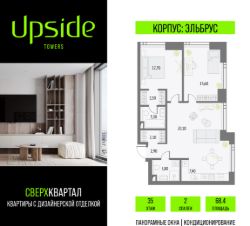 Upside Towers - технологичный квартал строится в динамично развивающемся Бутырском районе, в 3 мин. от метро, в 5 мин. от ТТК. На территории 7 га возводится 5 высотных башен от 19 до 58 этажей, названных в честь главных вершин земли. Квартиры с панорамными окнами в пол, высокими потолками и современными инженерными решениями. Благоустроенная зеленая территория включает: приватные дворы, природный комплекс, прогулочный бульвар, ландшафтный парк 2,5 га с сенсорным садом и многофункциональными игровыми и спортивными площадками.