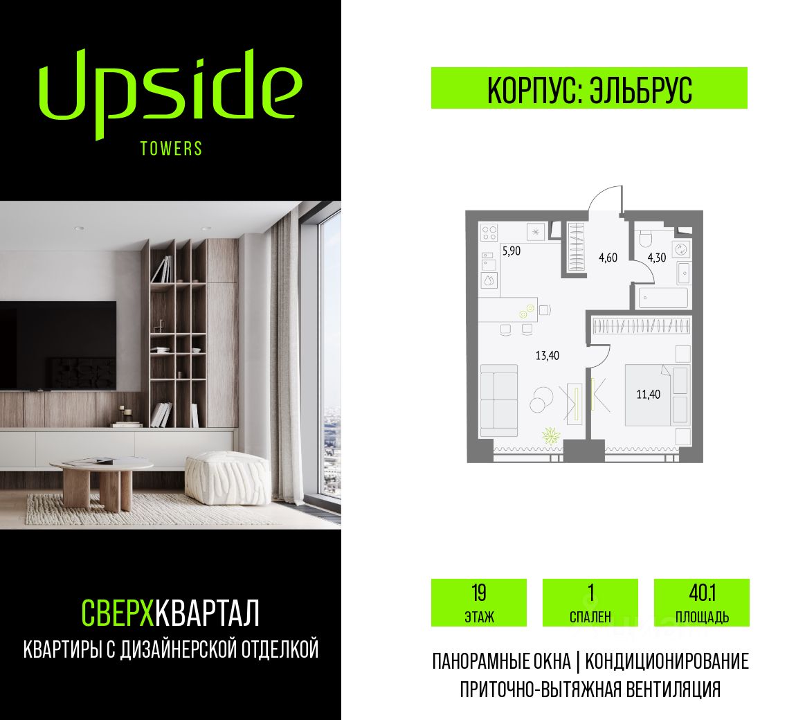 Upside Towers - технологичный квартал строится в динамично развивающемся Бутырском районе, в 3 мин. от метро, в 5 мин. от ТТК. На территории 7 га возводится 5 высотных башен от 19 до 58 этажей, названных в честь главных вершин земли. Квартиры с панорамными окнами в пол, высокими потолками и современными инженерными решениями. Благоустроенная зеленая территория включает: приватные дворы, природный комплекс, прогулочный бульвар, ландшафтный парк 2,5 га с сенсорным садом и многофункциональными игровыми и спортивными площадками.