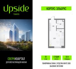 Upside Towers - технологичный квартал строится в динамично развивающемся Бутырском районе, в 3 мин. от метро, в 5 мин. от ТТК. На территории 7 га возводится 5 высотных башен от 19 до 58 этажей, названных в честь главных вершин земли. Квартиры с панорамными окнами в пол, высокими потолками и современными инженерными решениями. Благоустроенная зеленая территория включает: приватные дворы, природный комплекс, прогулочный бульвар, ландшафтный парк 2,5 га с сенсорным садом и многофункциональными игровыми и спортивными площадками.
