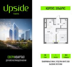 Upside Towers - технологичный квартал строится в динамично развивающемся Бутырском районе, в 3 мин. от метро, в 5 мин. от ТТК. На территории 7 га возводится 5 высотных башен от 19 до 58 этажей, названных в честь главных вершин земли. Квартиры с панорамными окнами в пол, высокими потолками и современными инженерными решениями. Благоустроенная зеленая территория включает: приватные дворы, природный комплекс, прогулочный бульвар, ландшафтный парк 2,5 га с сенсорным садом и многофункциональными игровыми и спортивными площадками.