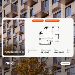 Продаётся 2-комн. квартира площадью 61,1 кв.м на 31 этаже 32 этажного дома (Корпус 1.1, Секция 2) проекта ПИК Алтуфьевское 53. Светлый просторный подъезд на уровне земли, функциональная планировка, большие окна, c отделкой.