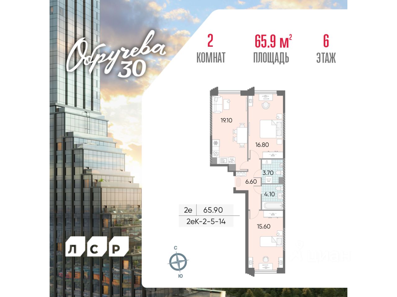 Продается 2-комнатная квартира общей площадью 65.9 кв. метров на 6 этаже дома бизнес-класса "Обручева 30". Дом располагается в 5 минутах ходьбы до станции метро "Калужская" и 10 минутах до станции метро "Воронцовская". Для автомобилистов удобный и быстрый выезд на улицы Обручева и Профсоюзную.