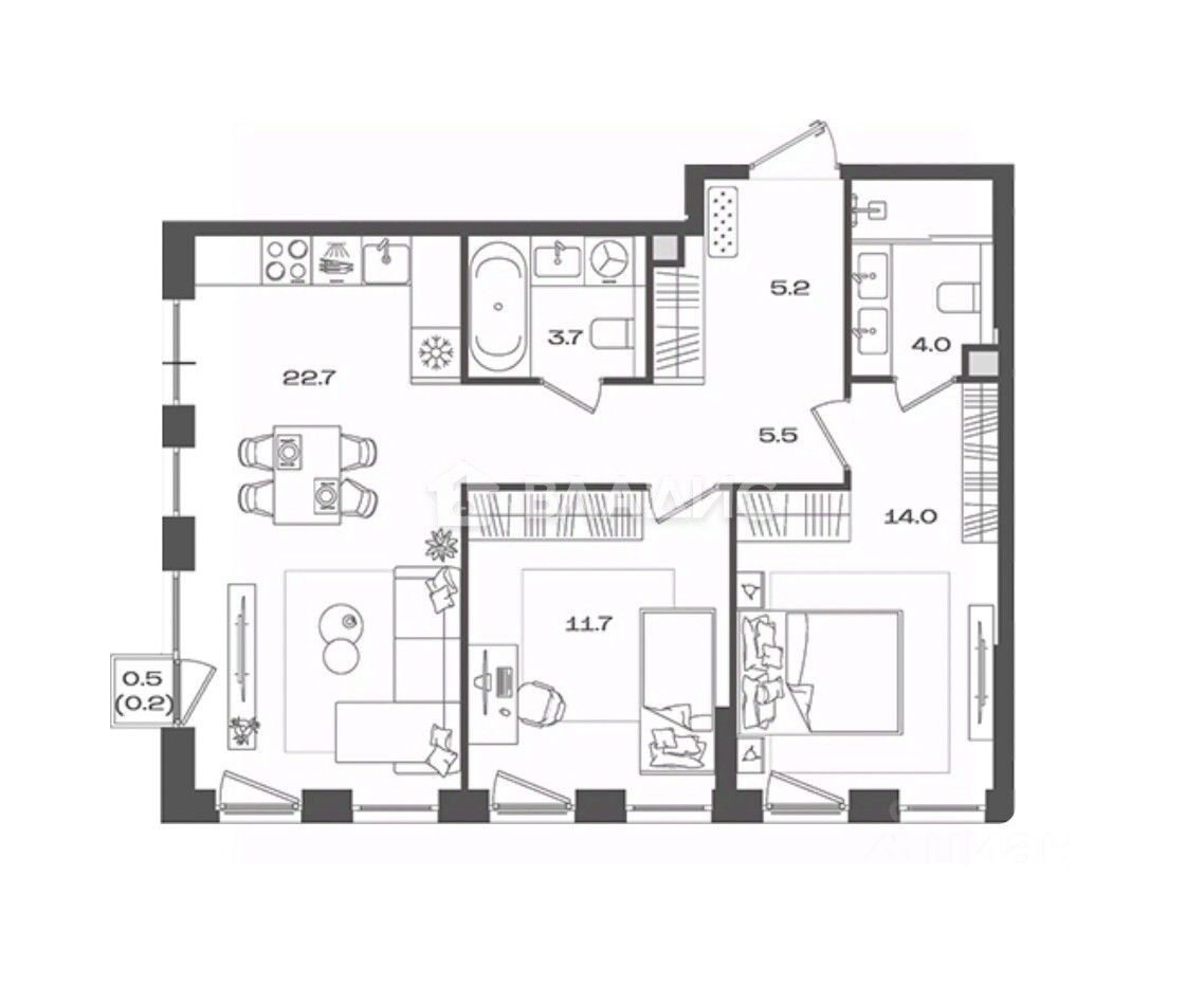 - 66.8 кв.м,