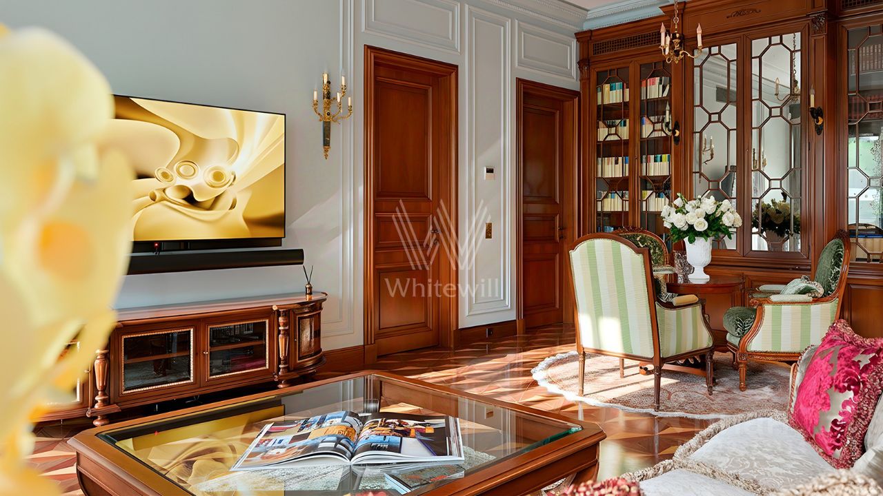 Просторная квартира с тремя спальнями в доме делюкс-класса "Гранатный, 6" на втором этаже. Интерьер сочетает в себе черты нескольких стилей — в изящную классическую канву вплетены элементы модерна и современного искусства. Квартира укомплектована, изготовленной под заказ из ценных пород дерева и эксклюзивного текстиля, мебелью и встроенной бытовой техникой.