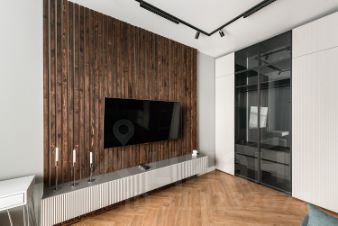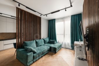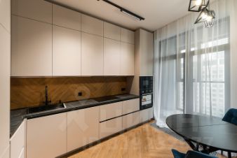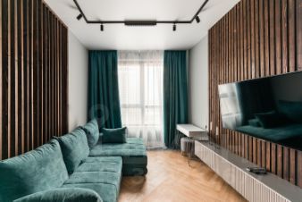 Вся отделка выполнялась с предчистовой для себя по индивидуальному дизайн-проекту с использованием премиальных материалов. Есть вся необходимая мебель, изготовленная на заказ, а также бытовая техника премиальных брендов (Bosch, Gorenje). Установлена система "Умный дом", климат-контроль и тёплые полы. Освещение предусматривает несколько возможных сценариев. После ремонта никто не проживал, всё новое!
