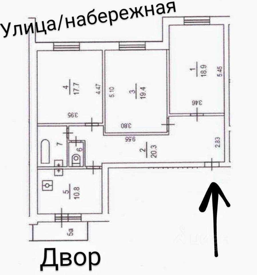 Окна на две стороны (набережная в сторону моста) и балкон во двор.