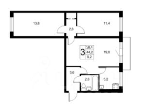 Продается 3-комнатная квартира, по адресу: г. Москва, ул. Симоновский Вал, д. 20, корп.1 расположенная на 4 этаже 5-ти этажного дома 1962г.п.