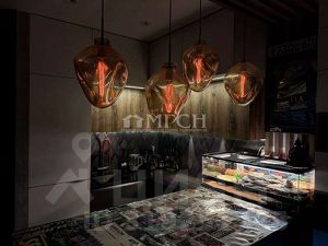 В барной стойке вмонтировано два огромных ящика, система хранения. Там же расположены духовка, микроволновая печь, посудомоечная машина. Вместительный холодильник,морозильник, фильтр на воду.