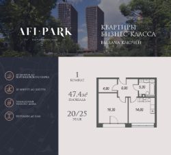 Продается просторная 1-комнатная квартира общей площадью 47,4 м² на 20 этаже в построенном жилом квартале AFI Рark "Bоpонцовcкий". Проект сдан, выдаем ключи!