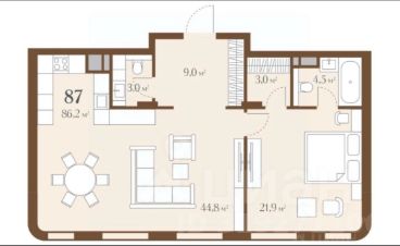Высокие потолки 3.4 метра добавляют ощущение простора и света.