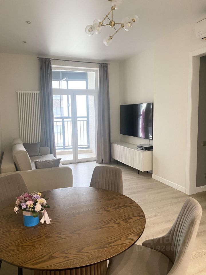 В квартире сделан качественный евроремонт. Кондиционеры во всех комнатах . Планировка включает две спальной комнаты, кухня гостиная и 2 санузла с современными сантехническими решениями. Сделана шумо-изоляция по потолку и по стенам примыкающим к соседям! Вы будете спать спокойно и никого не слышать ! Это большой плюс в новых домах . Из окон открывается вид во двор, что обеспечивает тишину и спокойствие. На лоджии можно обустроить зону отдыха или рабочее пространство.