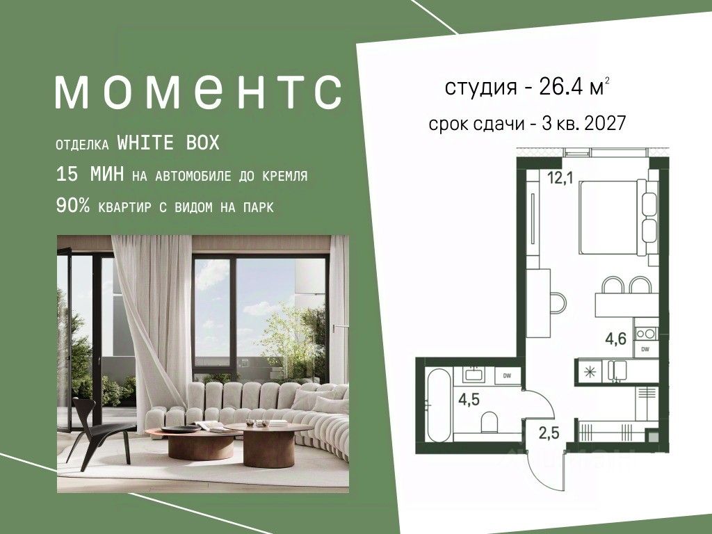Продается студия номер 14 общей площадью 26.4 кв.м. на 2-м этаже 30 этажного дома, корпус 2.1. С отделкой White Box.