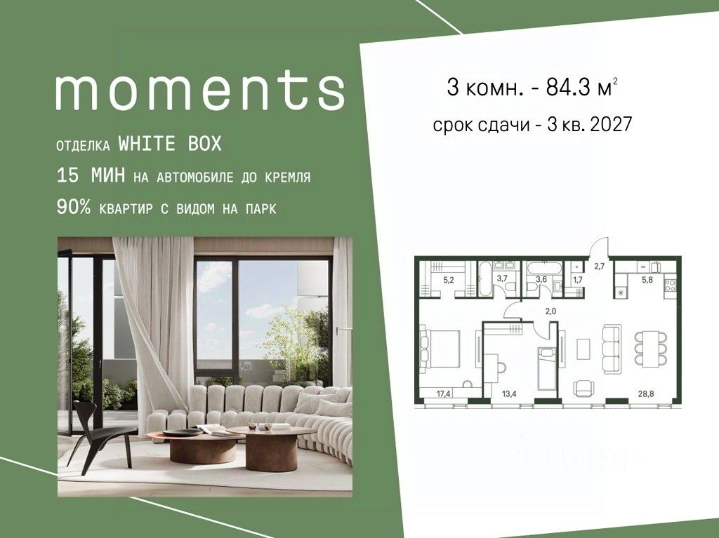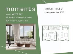 Продается 3-к. квартира номер 356 общей площадью 84.3 кв.м. на 29-м этаже 30 этажного дома, корпус 2.1. С отделкой White Box.