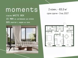 Продается 2-к. квартира номер 310 общей площадью 63.3 кв.м. на 25-м этаже 30 этажного дома, корпус 2.1. С отделкой White Box.
