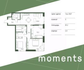 Продается 3-к. квартира номер 723 общей площадью 81.2 кв.м. на 28-м этаже 40 этажного дома, корпус 2.3. С отделкой White Box.