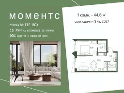 Продается 1-к. квартира номер 1172 общей площадью 44.6 кв.м. на 22-м этаже 34 этажного дома, корпус 2.2. С отделкой White Box.