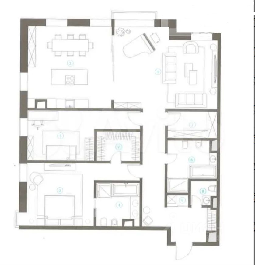 Продается просторная квартира в одном из самых престижных районов Москвы — на улице Большая Полянка. Общая площадь квартиры составляет 160 кв. м. Она расположена на 3 этаже 7-этажного монолитного дома, построенного в 2019 году. Высота потолков — 3.4 метра. В квартире 2 комнаты и большая кухня площадью 25 кв. м, что создает отличные условия для комфортной жизни.