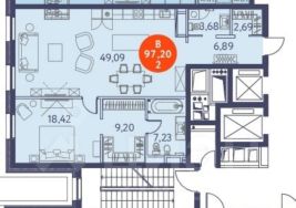 Расположена на 5 этаже 7ми эт. Клубного дома. Квартира состоит из просторной гостиной-столовой 50м2 с кухней и дровяным камином, спальни с ванной комнатой и удобной большой гардеробной, гостевой санузел, постирочная.